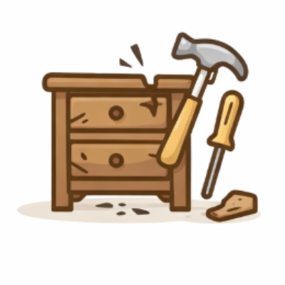 Arreglo de muebles dañados, puertas, cajones, bisagras, estructuras flojas o deterioradas.